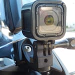 Supporto in alluminio anodizzato nero per telecamera GoPro.